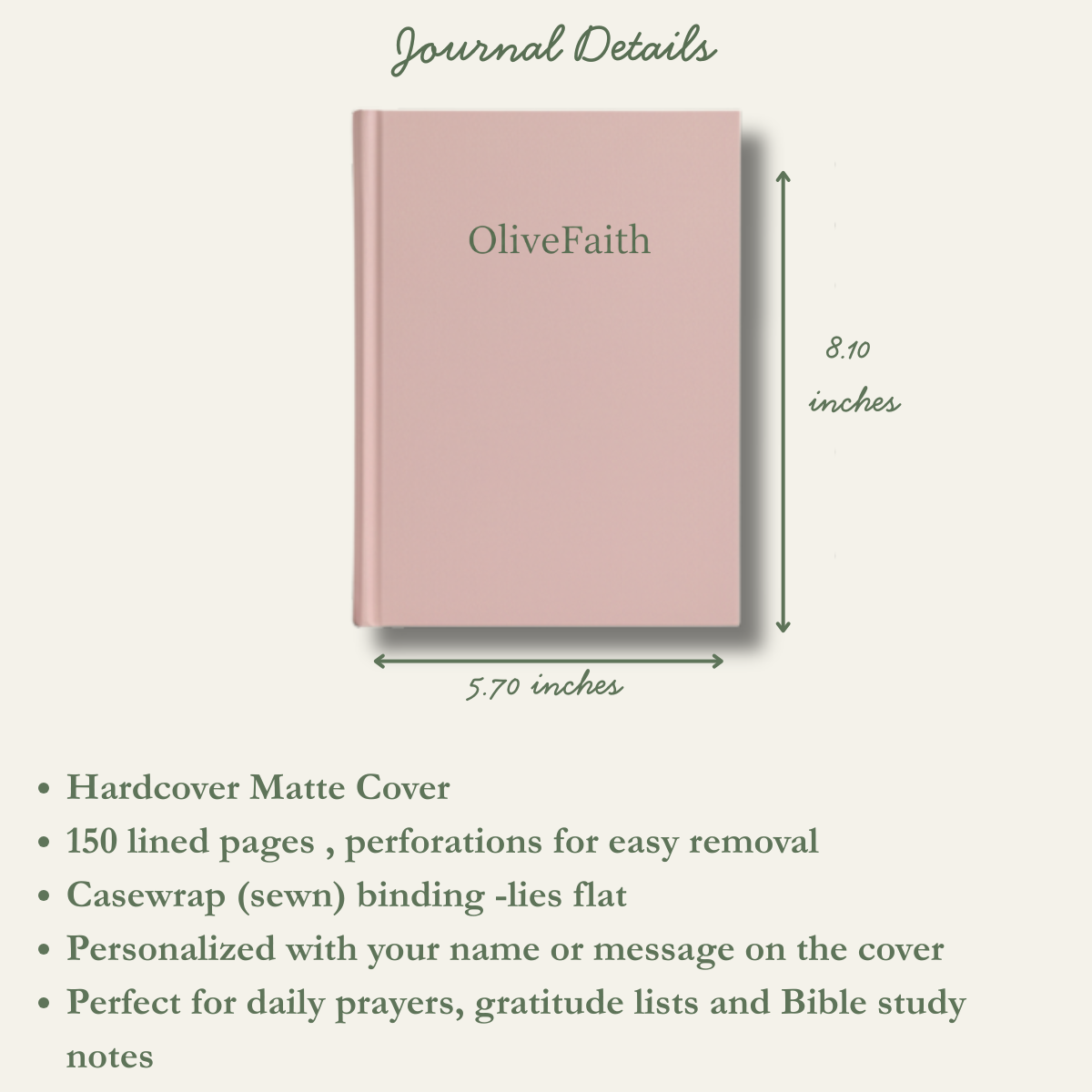 Each journal is personalised with your name and an optional Bible verse or message, so it feels like it was created just for you, not just another notebook.
