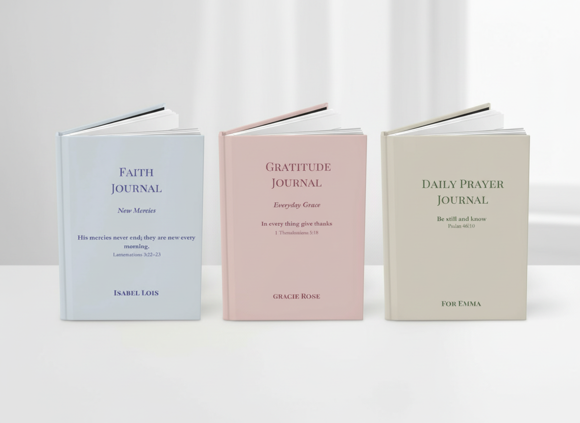 A complete set of three personalised Christian journals for prayer, gratitude and fresh starts with God – a beautiful gift for quiet, everyday faith.