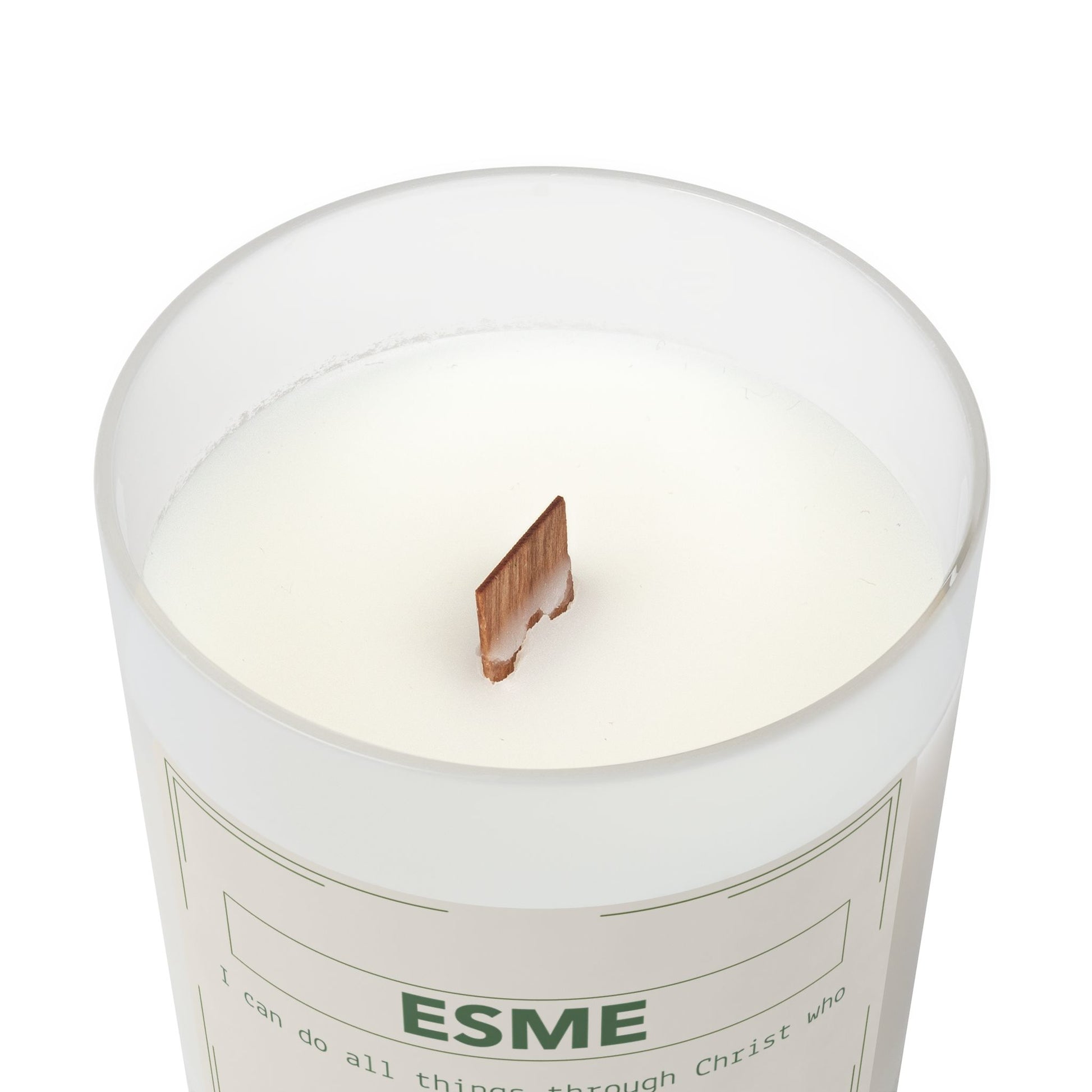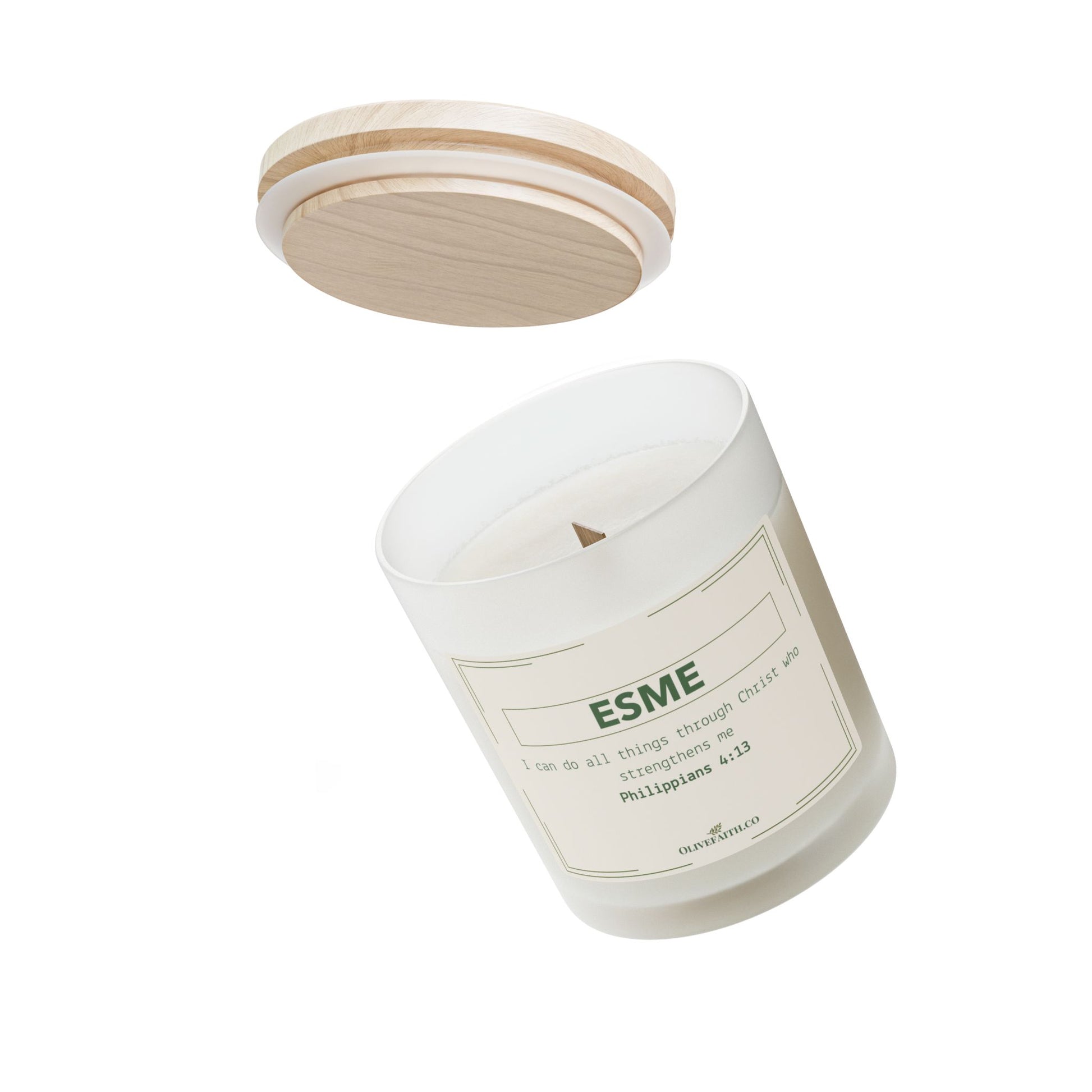 Encourage faith and confidence with this minimal, personalized candle. Each 11oz frosted glass candle is custom-printed with a name and the empowering verse: