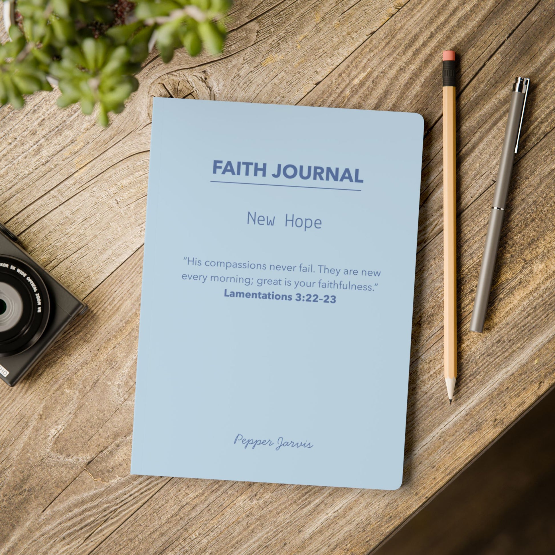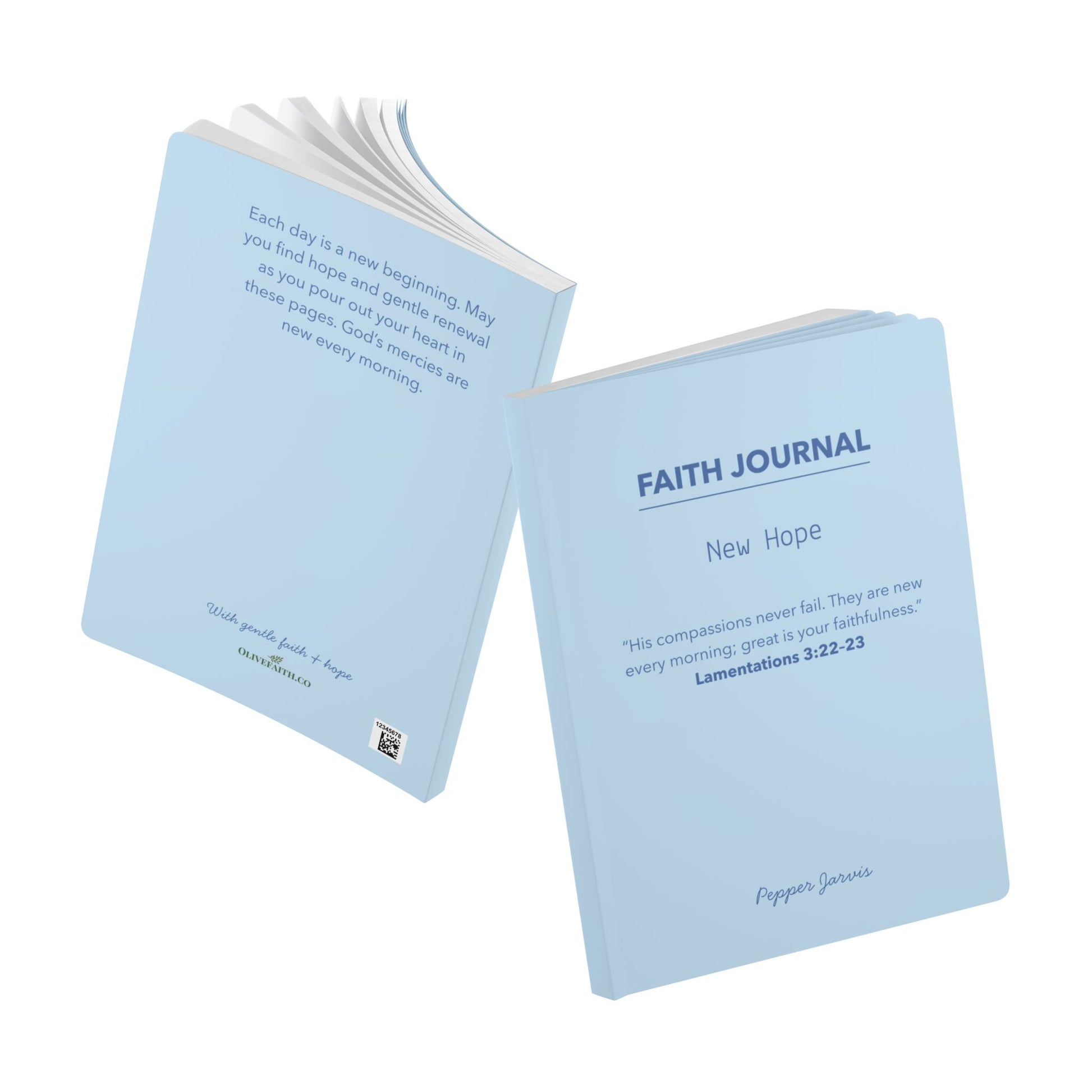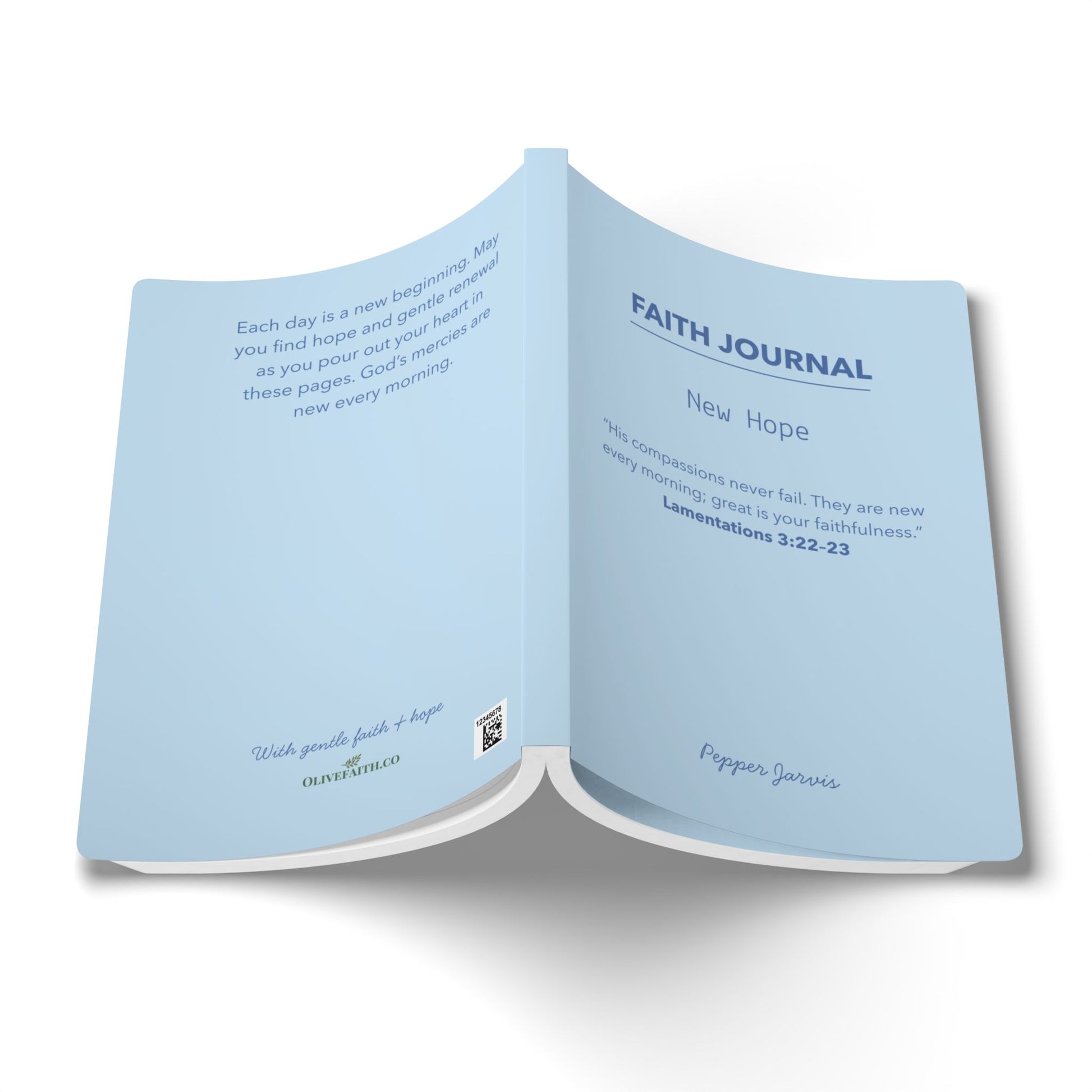 Find gentle encouragement and daily renewal with the New Hope Journal in a tranquil soft dove hue. This personalized softcover journal is designed for faith-filled reflection, prayer, and gratitude