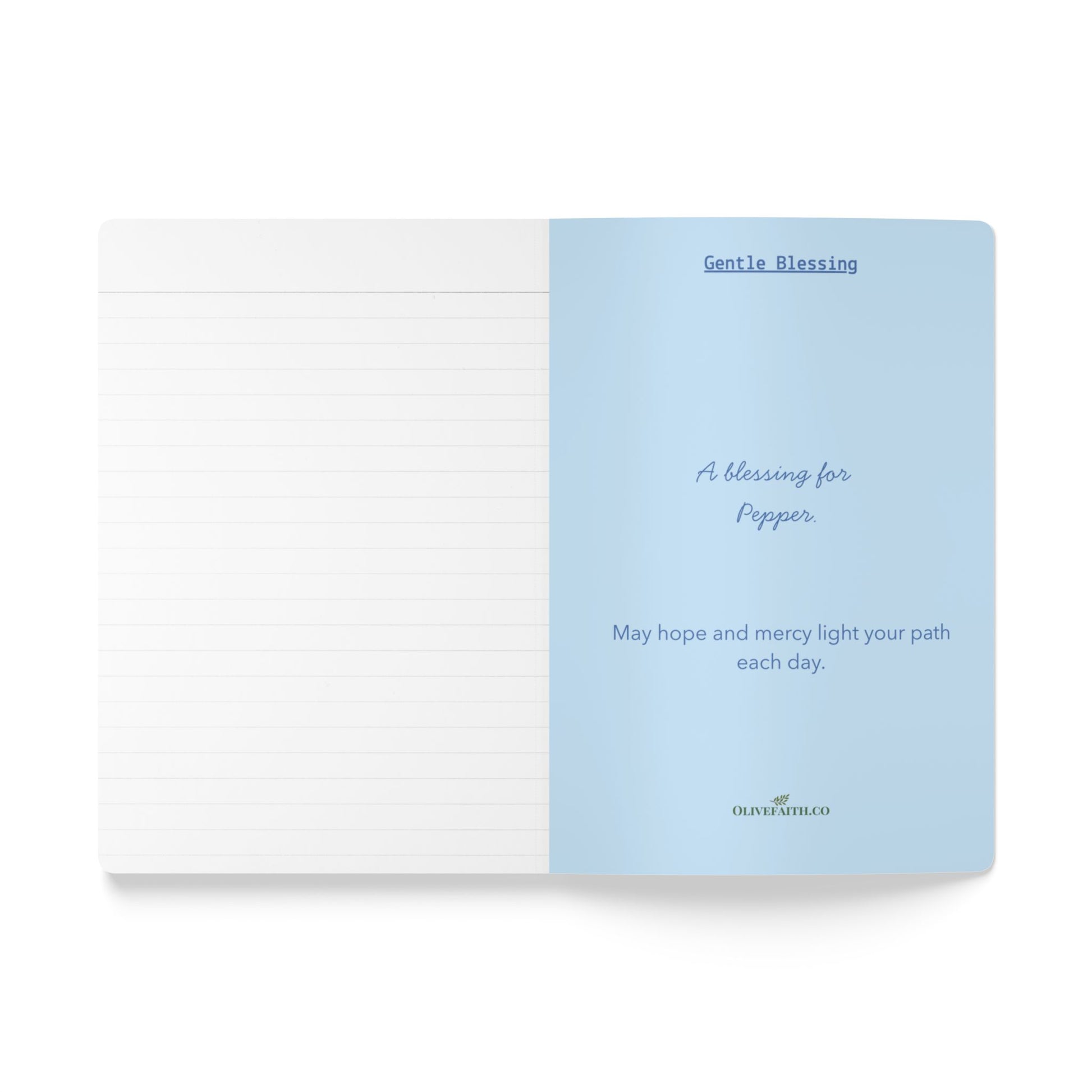 Please enter the name you’d like printed on the front cover and included in the final blessing page in the “Personalization” box at checkout. Double-check spelling, as your journal will be custom printed just for you.